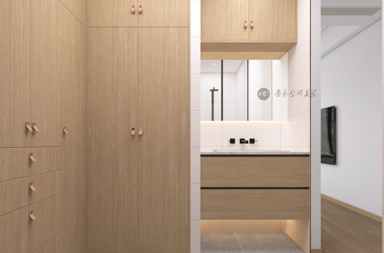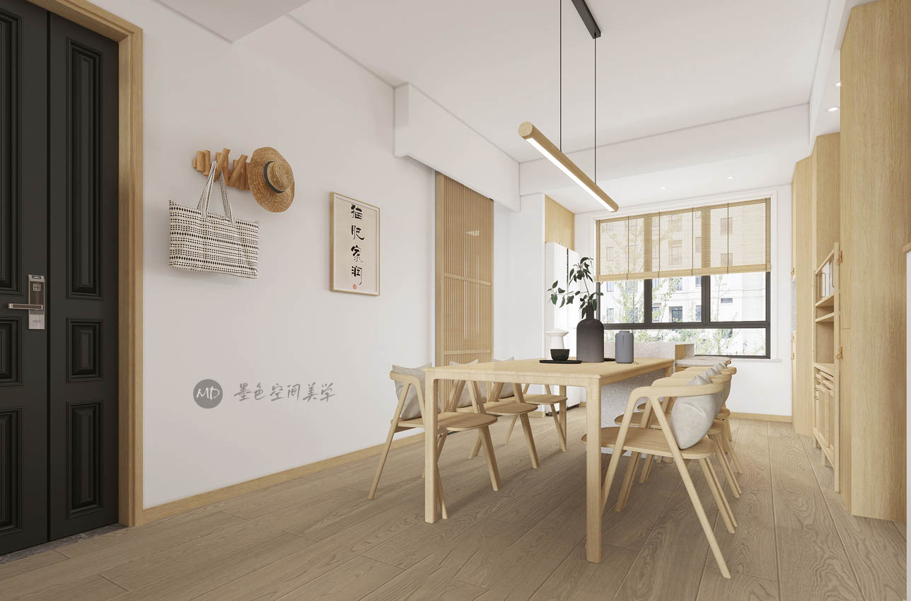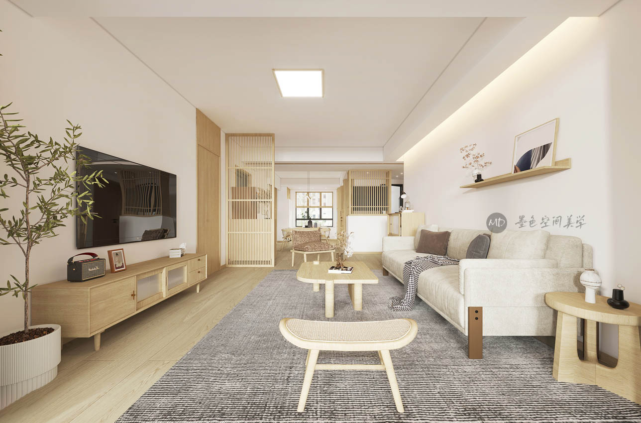 :业主喜欢干干净净的感觉,偏爱MUJI风,刚接触的时候就想要木格栅的装饰,喜欢简单的木纹系线条感,所以家里考虑了部分木条装饰。