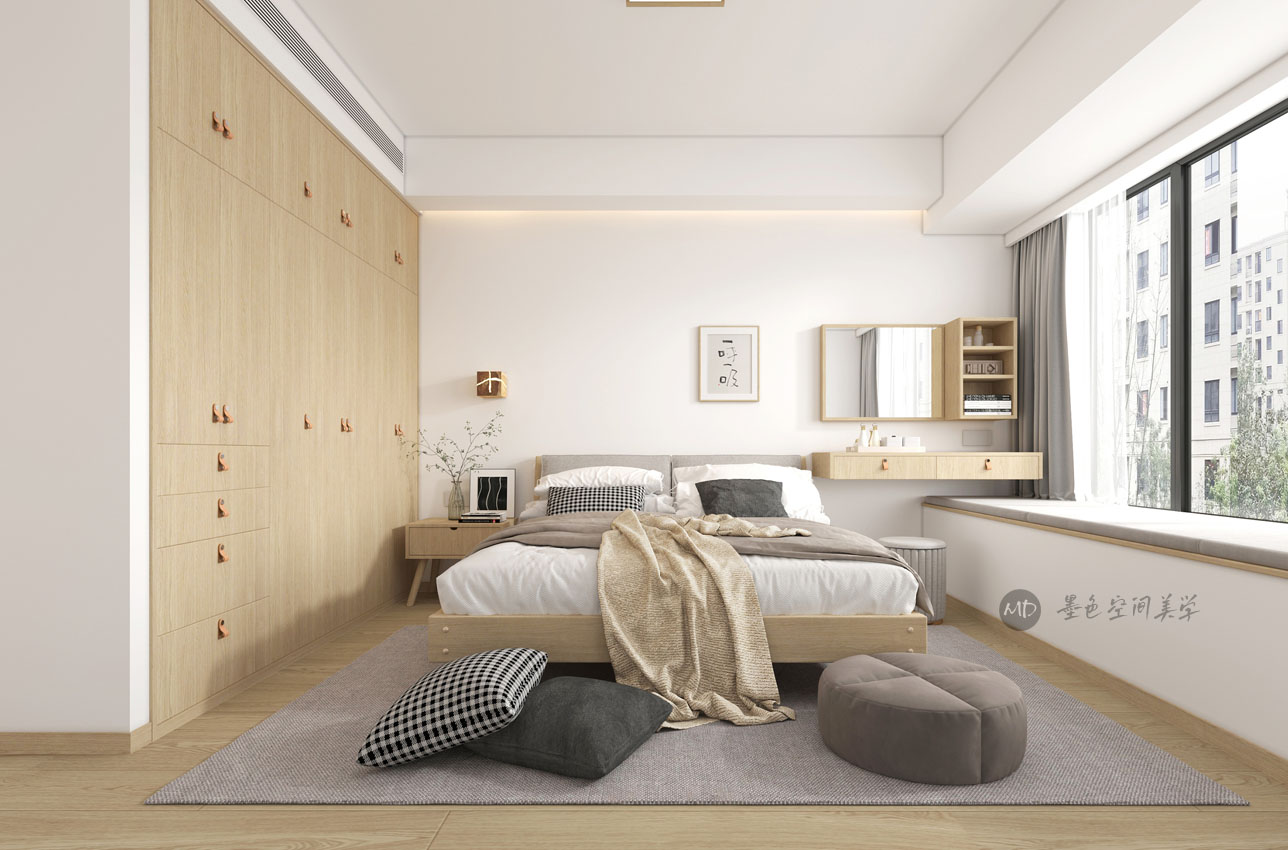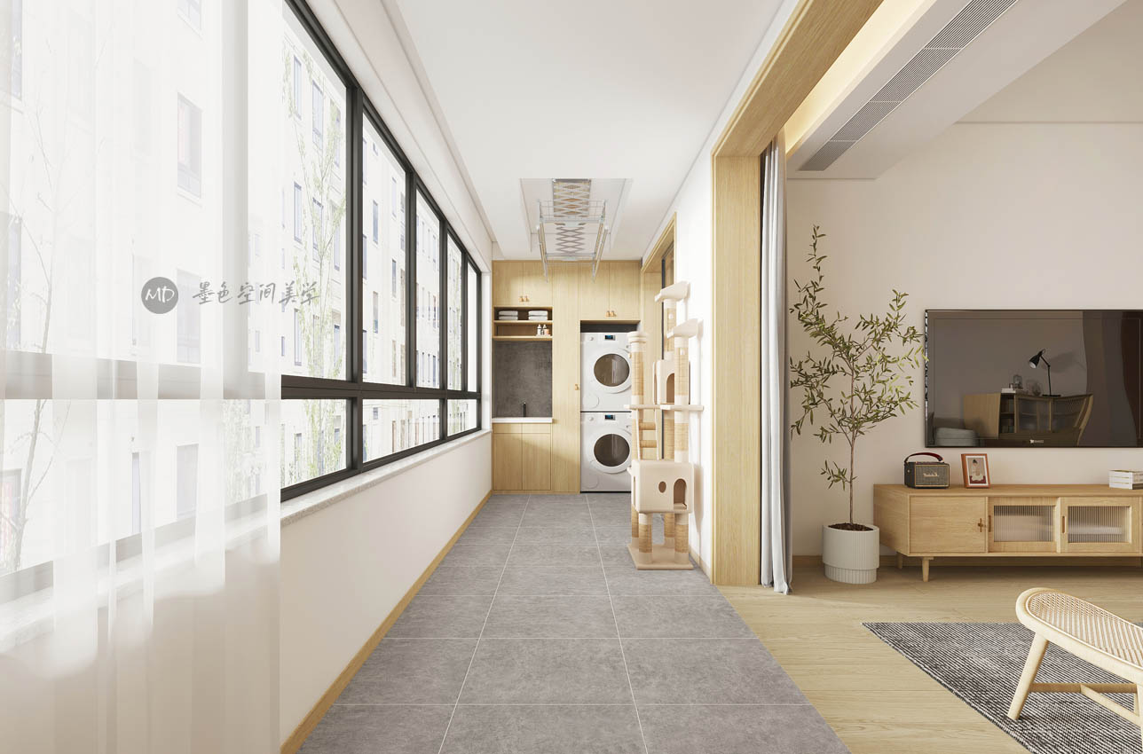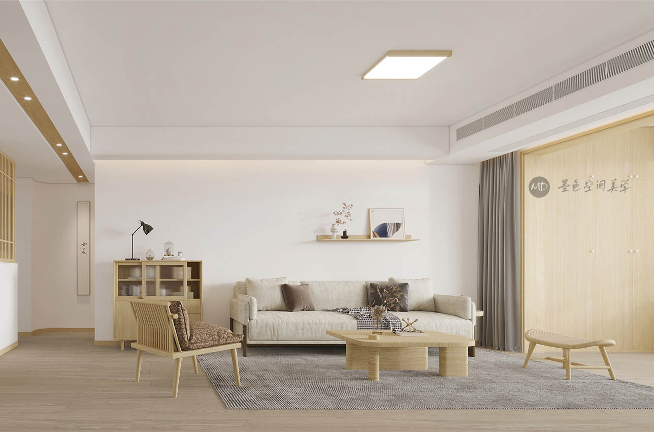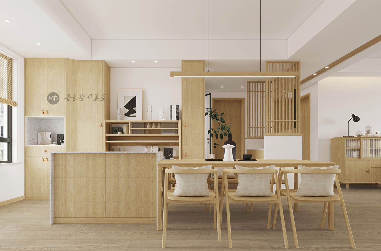 :业主喜欢干干净净的感觉,偏爱MUJI风,刚接触的时候就想要木格栅的装饰,喜欢简单的木纹系线条感,所以家里考虑了部分木条装饰。