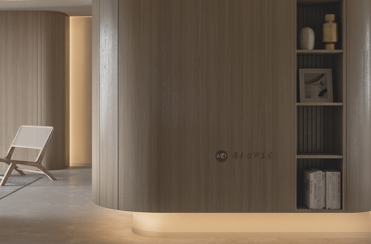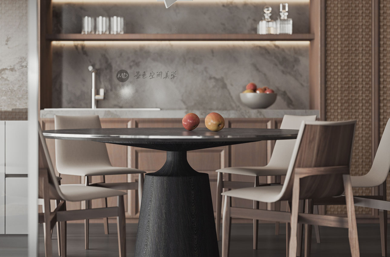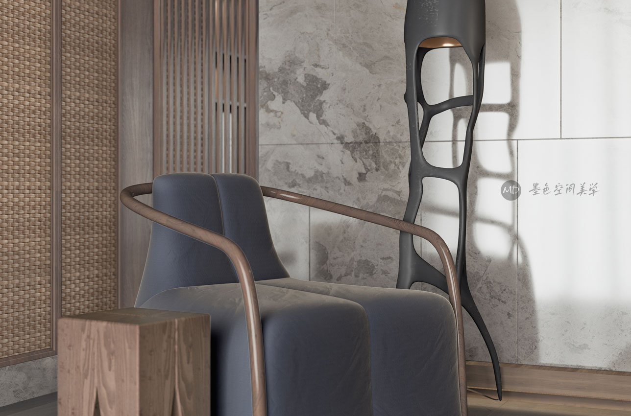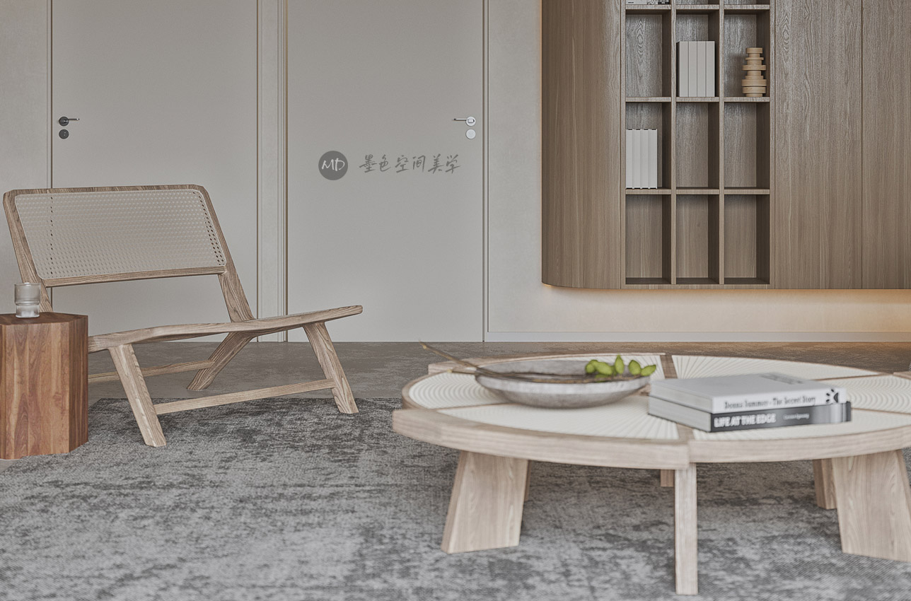 :业主希望在极简中去考虑中式风格的元素和线条,不太喜欢传统的中式风格,本作品算中式极简混搭。