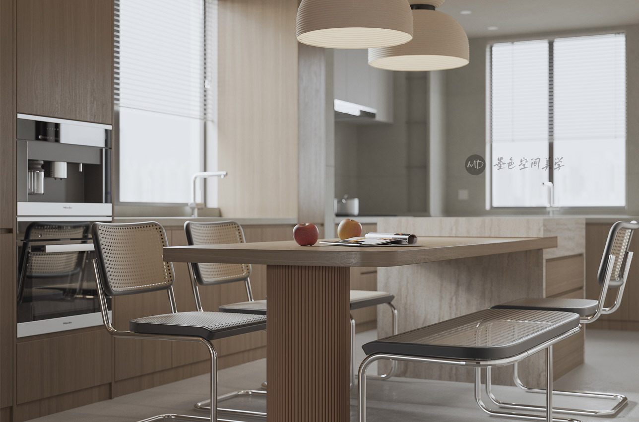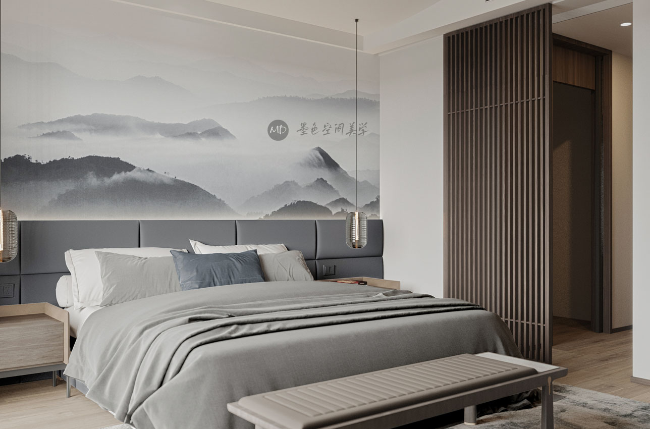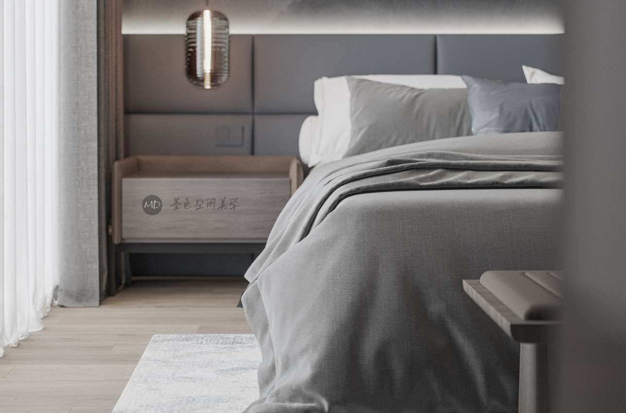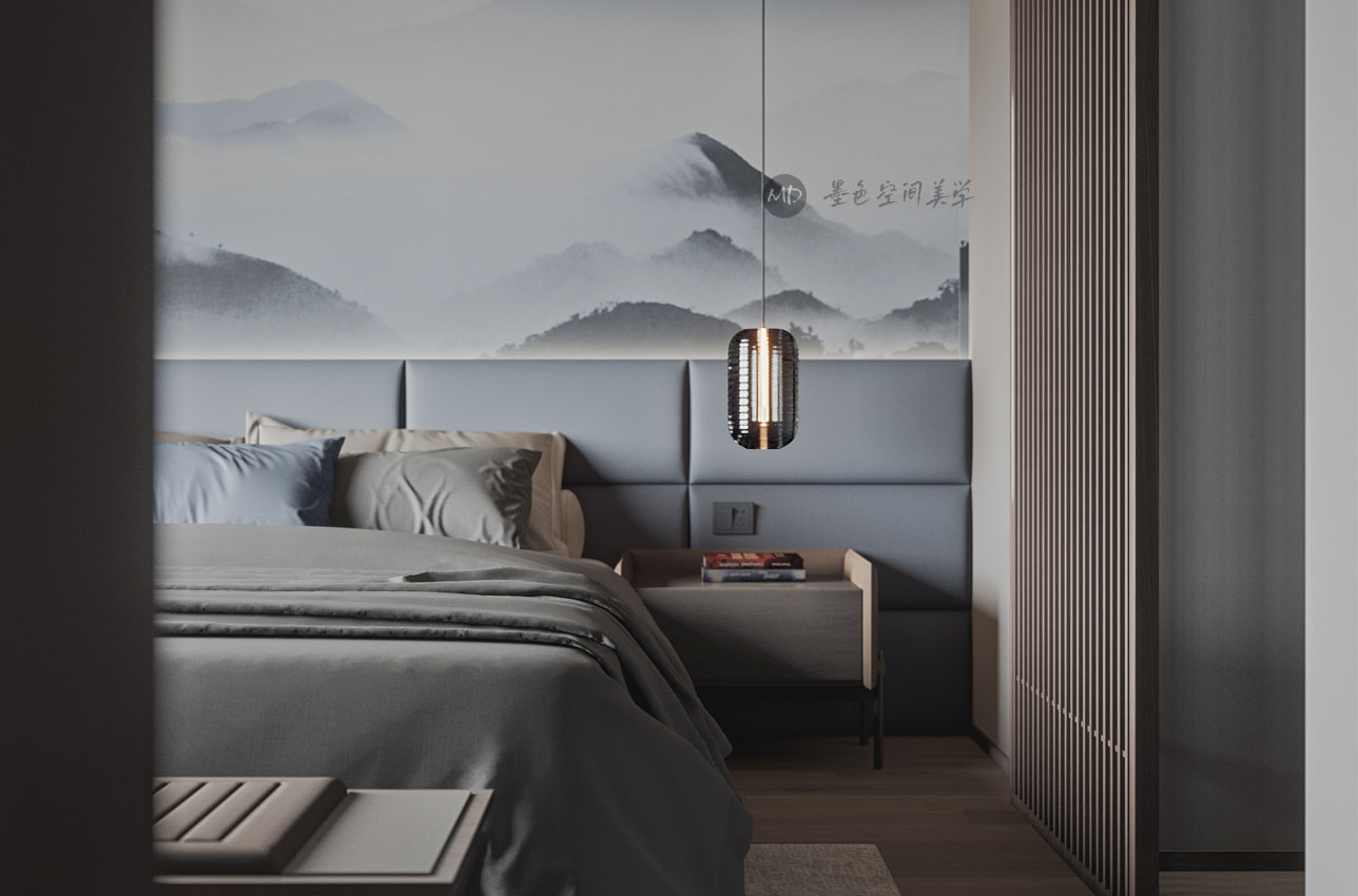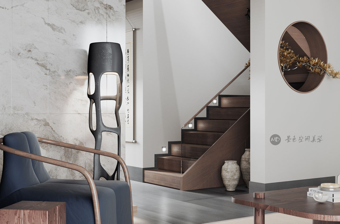 :业主希望在极简中去考虑中式风格的元素和线条,不太喜欢传统的中式风格,本作品算中式极简混搭。