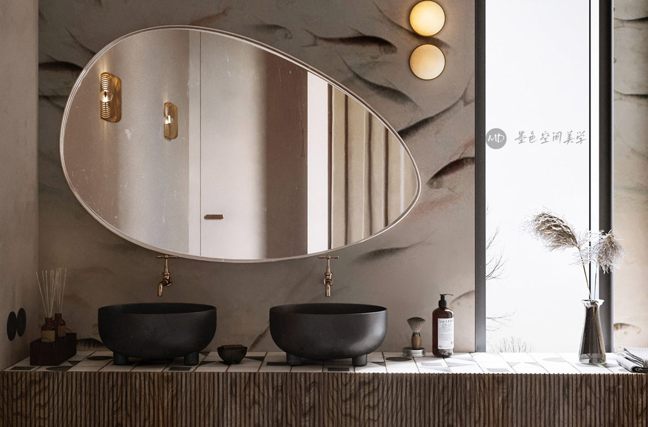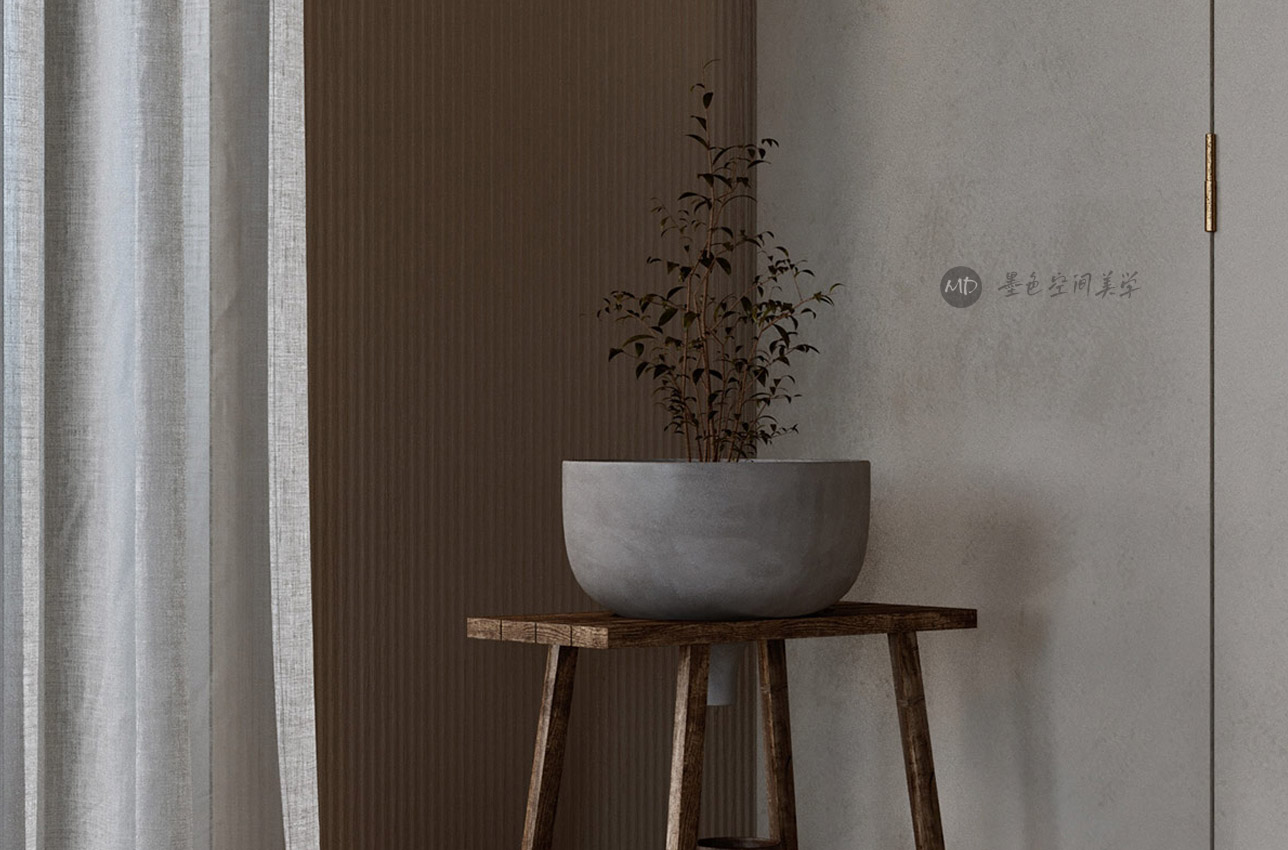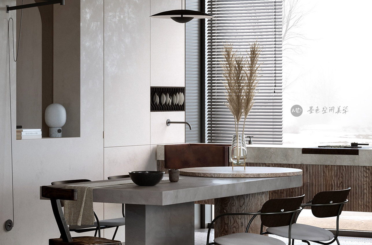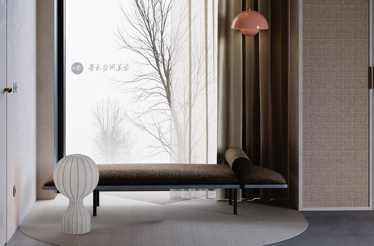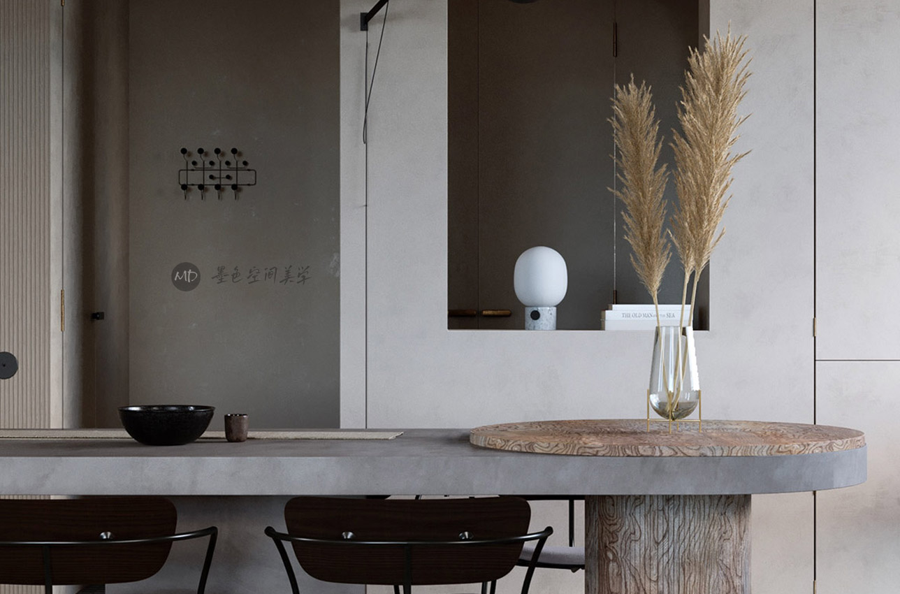:业主喜欢弧线条的造型,本作品算侘寂和奶油的混搭体,业主在小红书看了很多奶油风的调子,后来经过协商,做出了本作品。