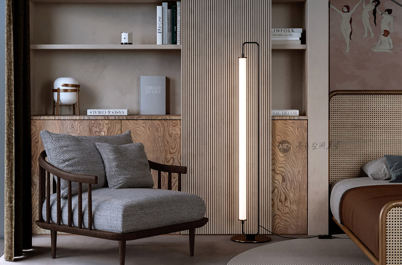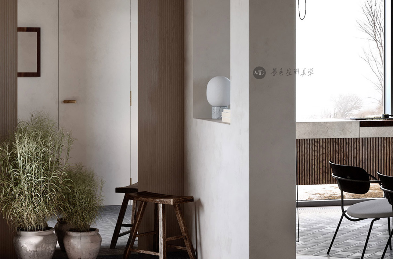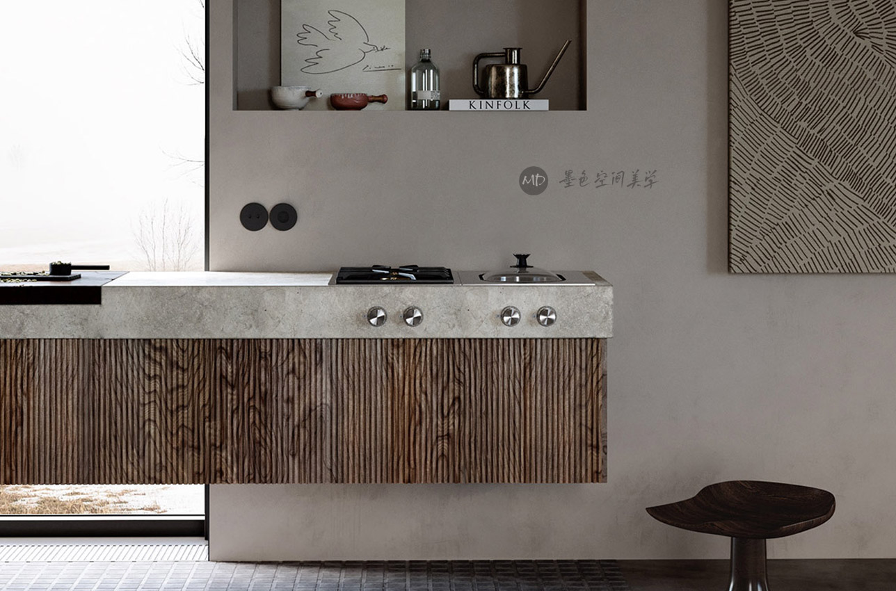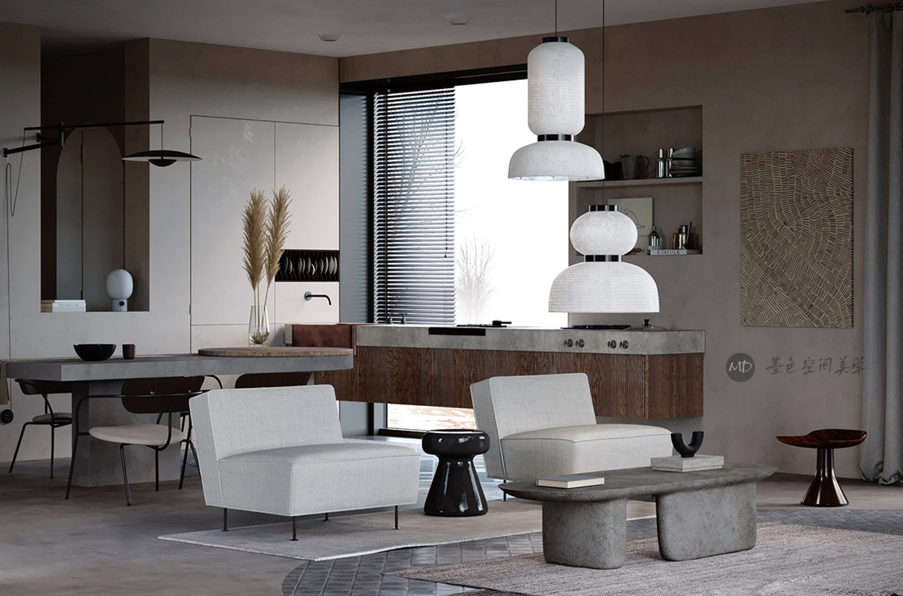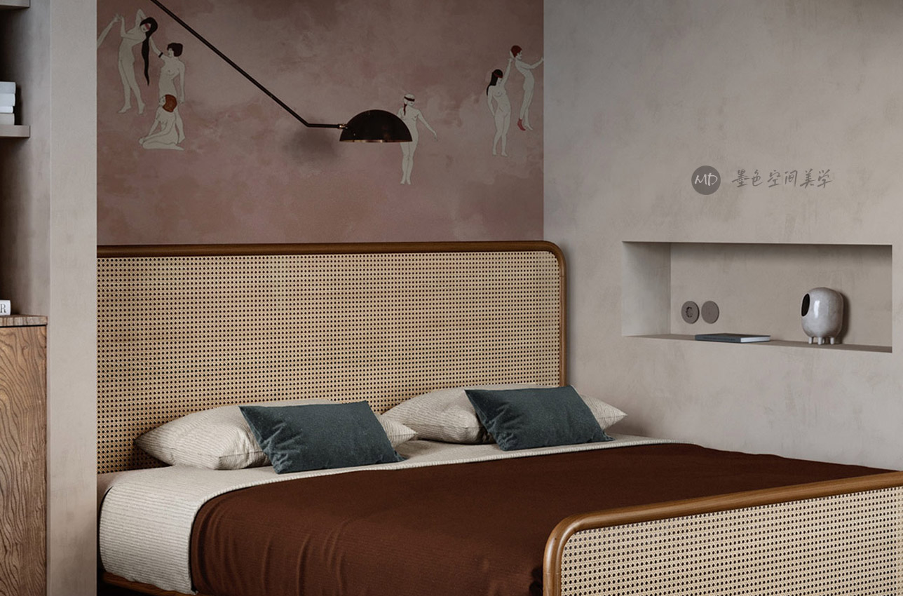 :业主喜欢弧线条的造型,本作品算侘寂和奶油的混搭体,业主在小红书看了很多奶油风的调子,后来经过协商,做出了本作品。
