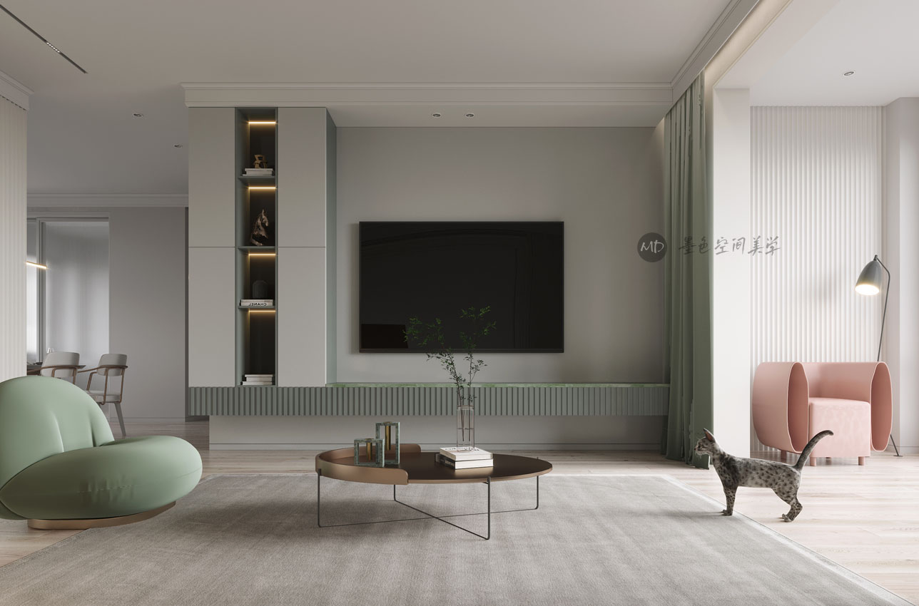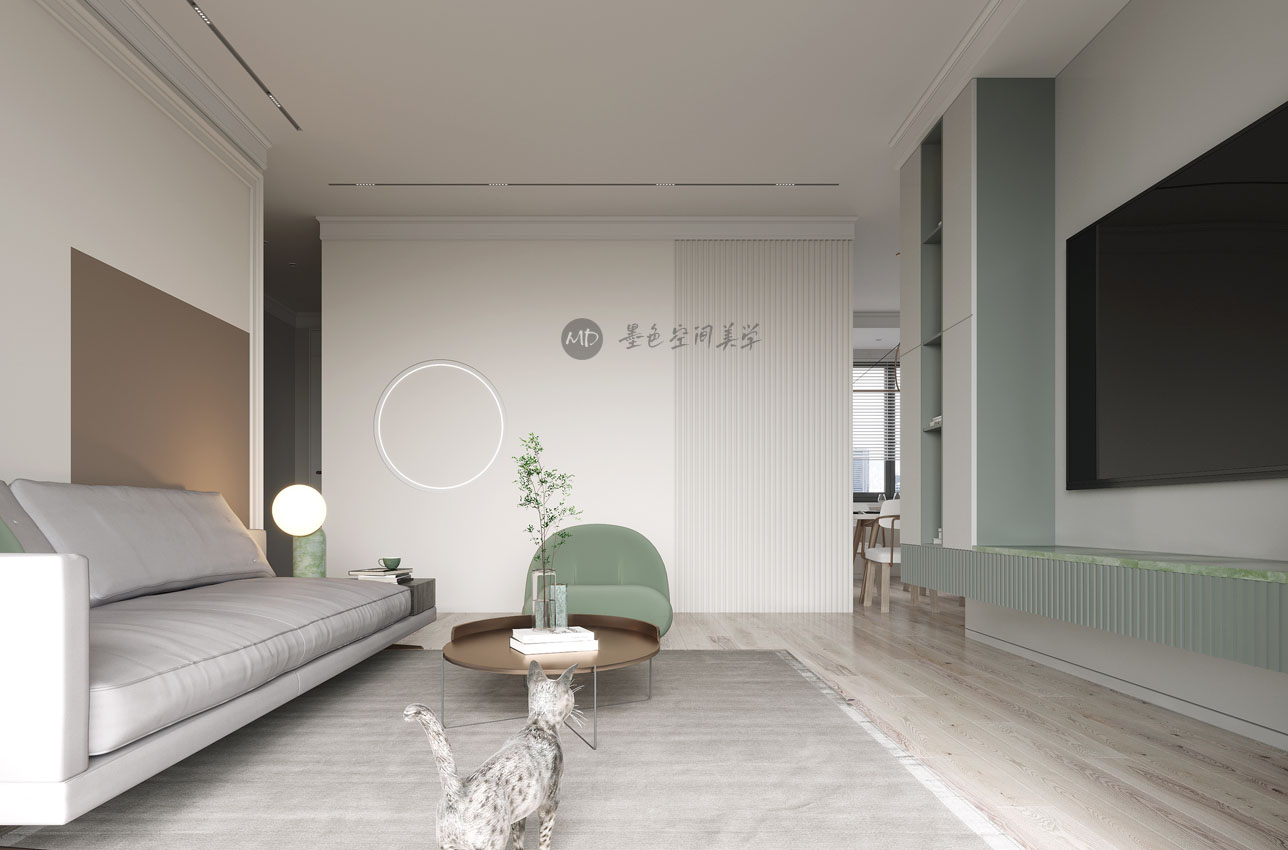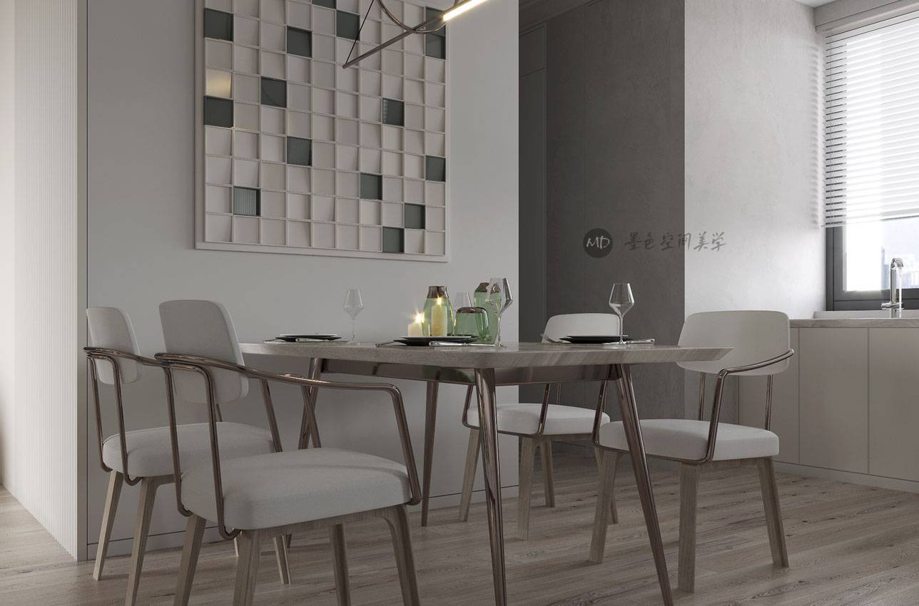 :业主喜欢北欧的线条感,又喜欢颜色干净利落,不喜欢重色调,在卧室要考虑办公的区域。