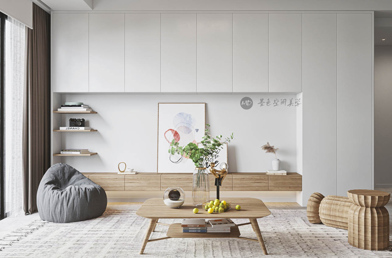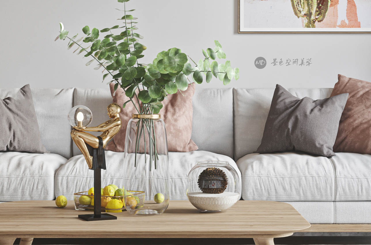 :喜欢玩偶的业主有一颗童心,希望家里充满活力,在活力中有一些静怡,喜欢很古怪的小玩意,此作品是北欧混搭风。